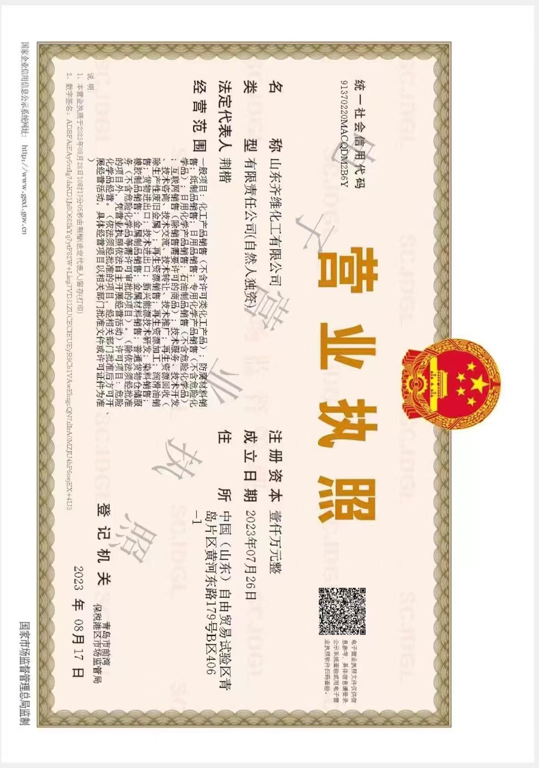 地 址:中国(山东)自由贸易试验区青岛片区黄河东路179号B区406-1