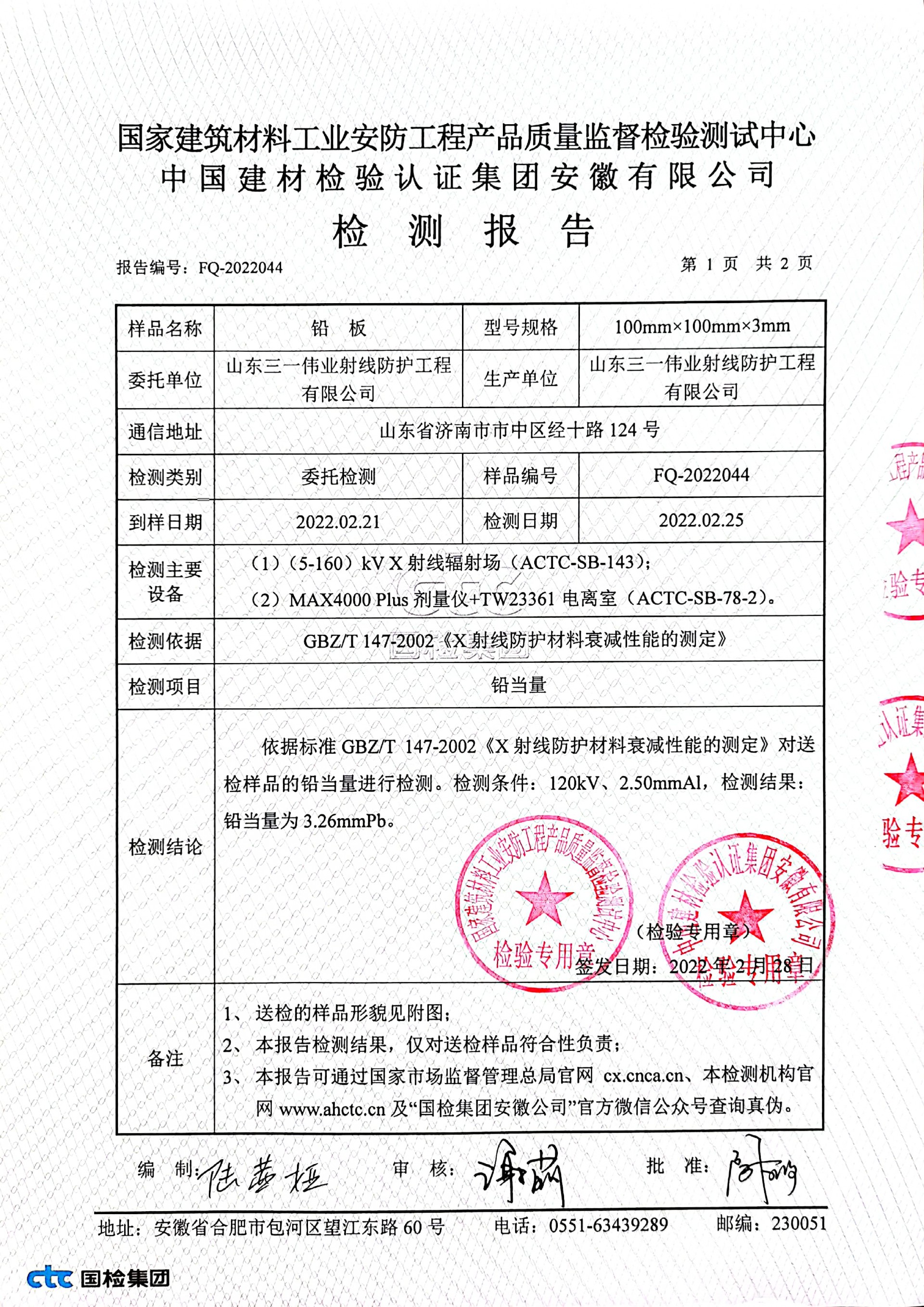 铅板检测报告