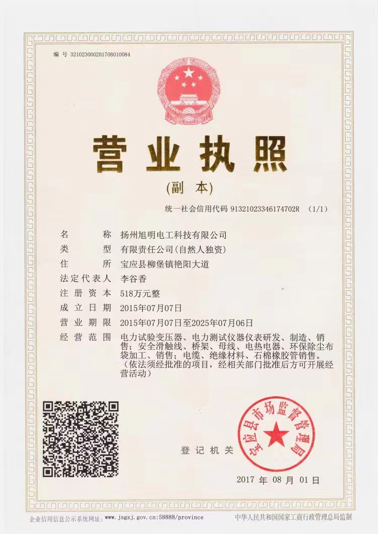电力试验变压器、电力测试仪器仪表研发、制造、销售;安全滑触线、桥架、母线、电热电器、环保除尘布袋加工、销售;电缆、绝缘材料、石棉橡胶管销售。