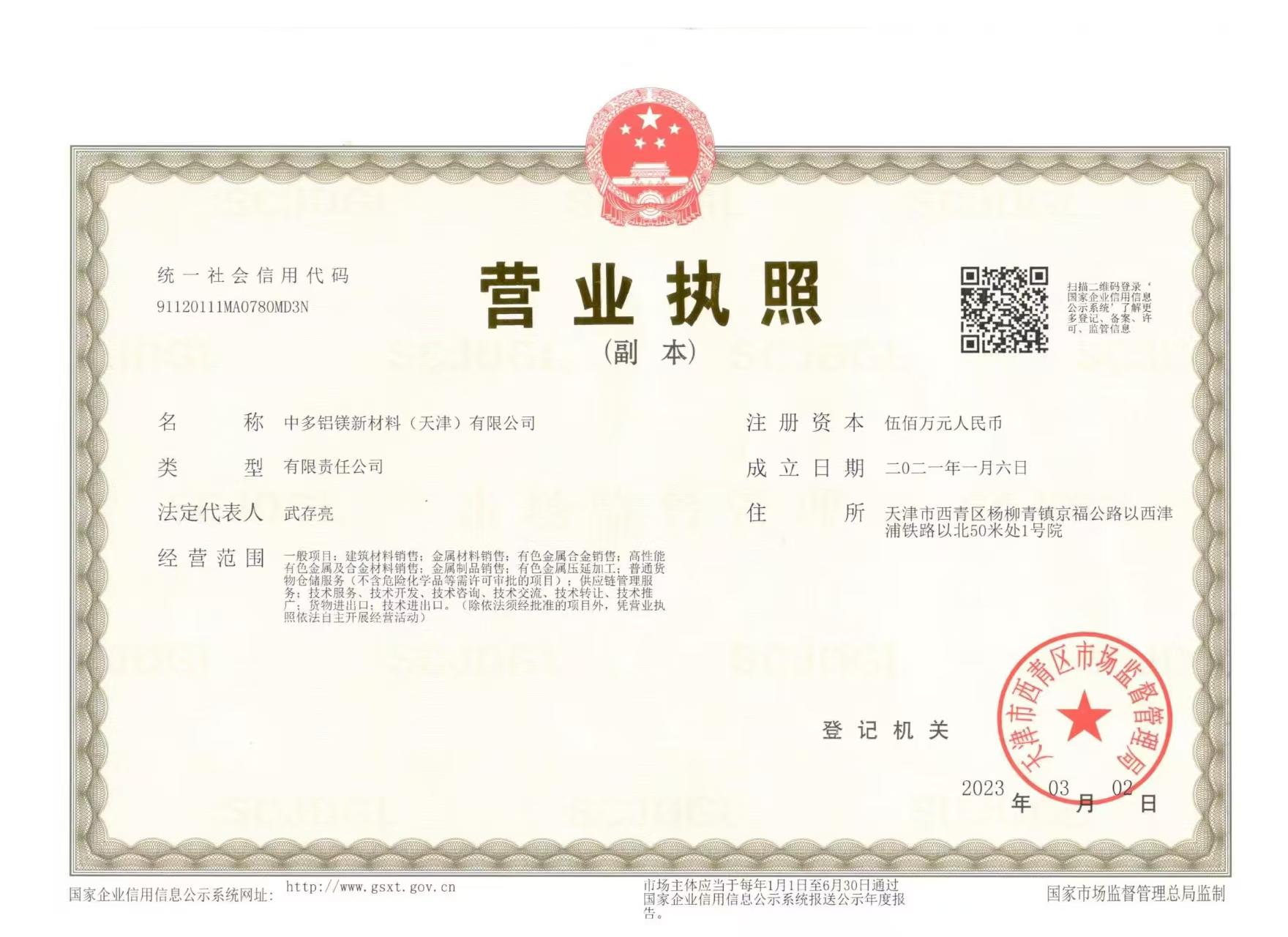 中多铝镁新材料(天津)有限公司