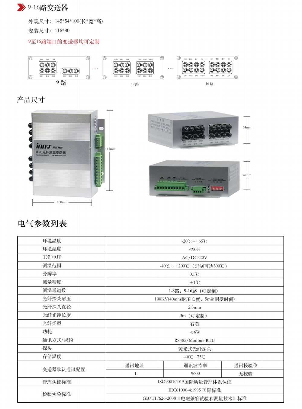 其中变送器使用的荧光式光纤温度传感器的温度热点与测量信号接收部分没有使用电气连接,能长期高精度和高稳定度工作。